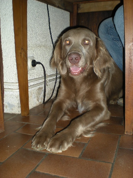 0,63. (11 ans et demi) Encore de beaux restes. Visiblement chien habitué aux rings, qui éprouve du plaisir par l'habitude. Exc proportions de tête. Excellent arc vertébral, excellentes angulations, poitrine et pieds. Excellentes allures.